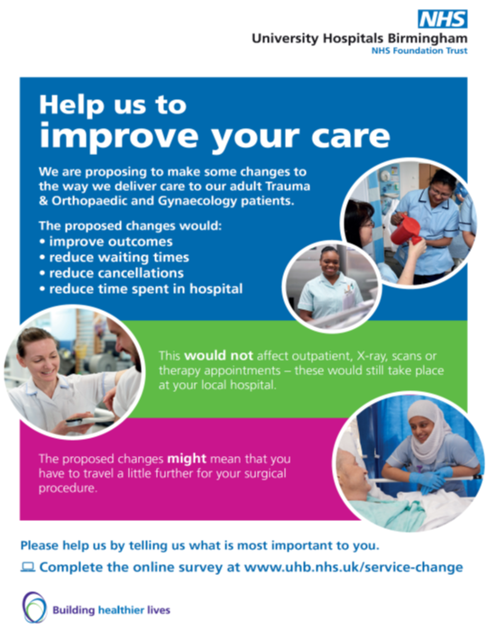 University Hospitals Birmingham NHS Foundation Trust (the Trust) are considering reorganising some of its adult services across Solihull, Good Hope and Heartlands hospitals to improve outcomes and reduce waiting times for patients.