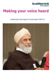 We are proud to present our annual report detailing how Healthwatch Birmingham helped the people of Birmingham during the Covid-19 pandemic. It also sets out how we will ensure that everyone can have their say about how health and social care services they use.