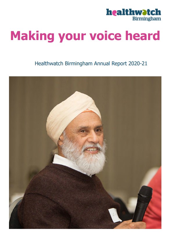 We are proud to present our annual report detailing how Healthwatch Birmingham helped Birmingham citizens during the Covid-19 pandemic. It also sets out how we will ensure that everyone can have their say about how health and social care services they use.