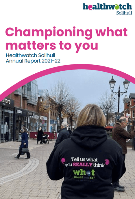 Healthwatch Solihull are proud to present our 2021-22 annual report, showing how we have used what local people have told us about their own experiences of health and social care services to drive the changes they need.